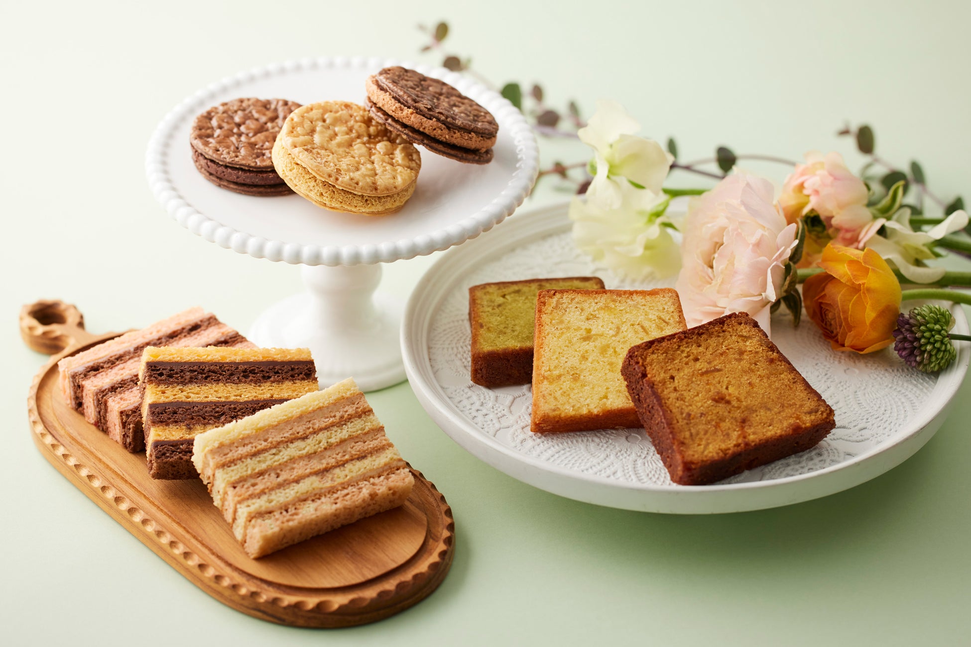 柑橘類のピールとナッツパウダーを使用した、しっとり食感のケーク「ケークセゾン」や香ばしく焼き上げたパイ生地に焼きチョコクランチをサンドした「ショコラパイ」、しっとりと焼き上げた2種類のビスキュイ生地にガナッシュとフルーツジャムを何層にも重ねた「ガトーミルフィーユ」など、夏に合わせて軽く爽やかに仕上げたこだわりの焼き菓子の数々をお届けします。