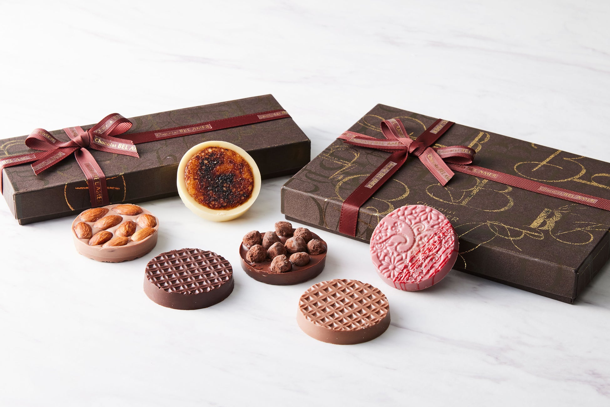 オリジナルチョコレートを使用したこだわりのガナッシュ、層を重ねて異なる食感を楽しむプラリネ、フランス産のバターと塩を使用した自家製キャラメル、フルーツの旨みを凝縮したパートドフリュイなど、チョコレートと素材の美味しさを存分に味わっていただけるプレミアムなパレショコラです。