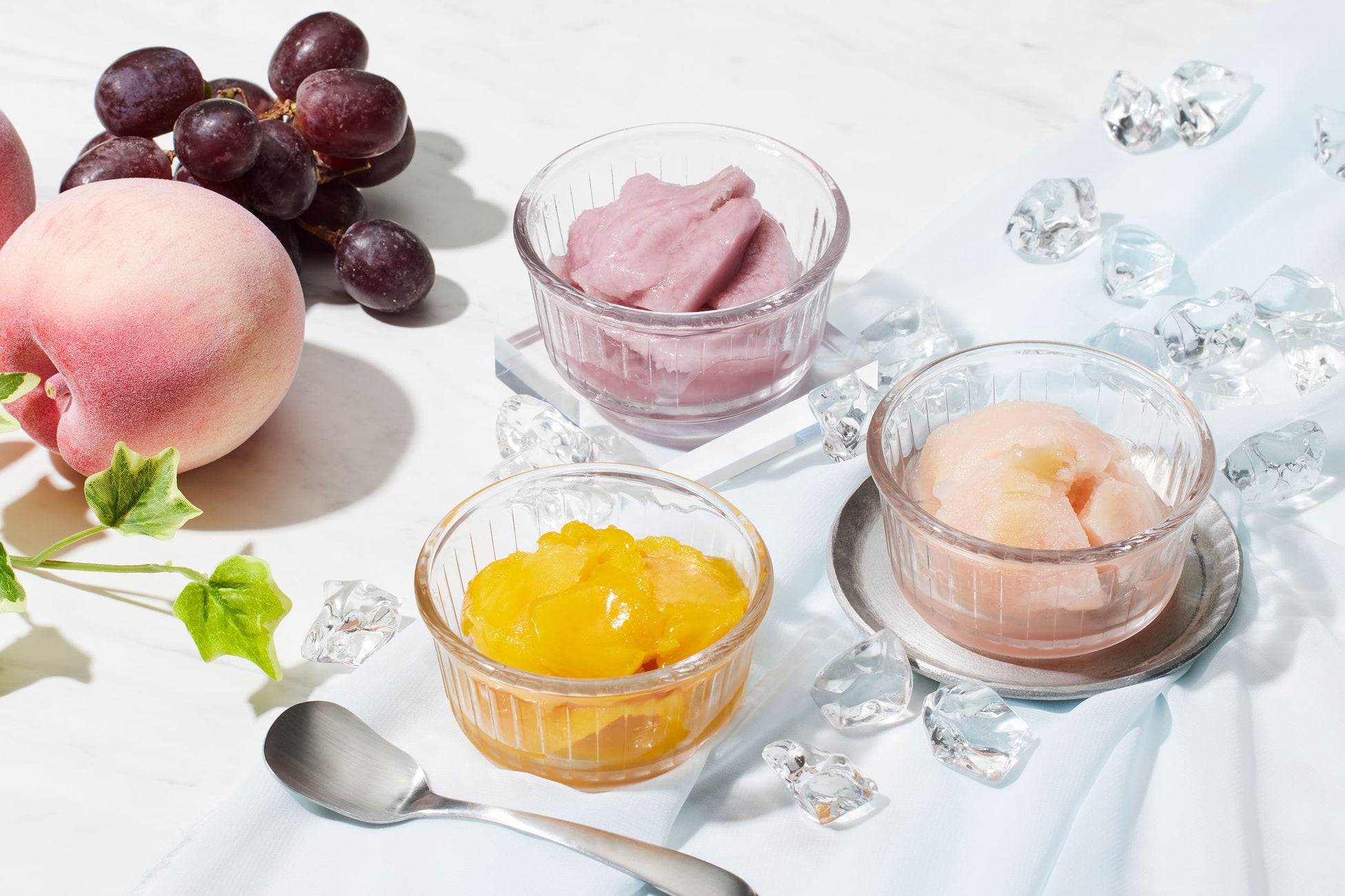 凍らせて食べる、果肉入りのフルーツシャーベット「凍らすフルーツシャーベット」