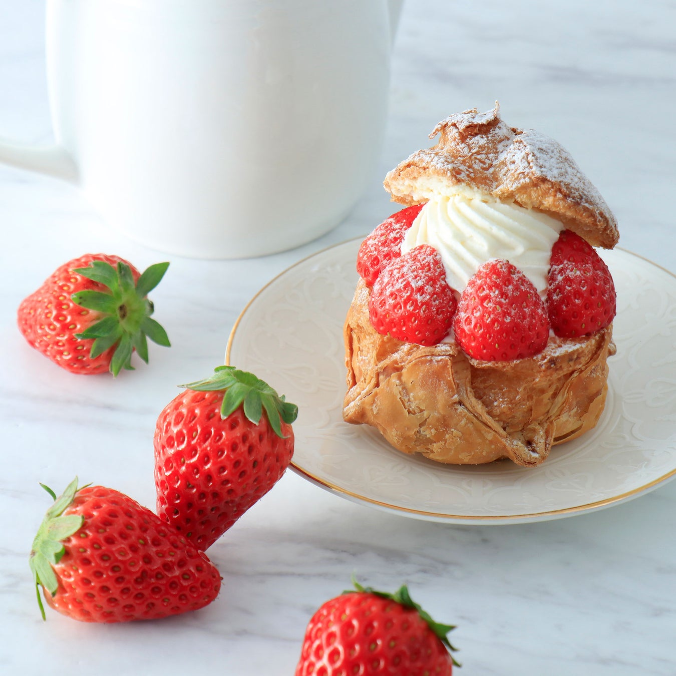 サクサクのパイ生地でシューを包んでから焼き上げ、濃厚なカスタード、口どけの良い生クリームをたっぷり絞った、王道の看板商品です。